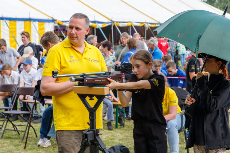 Namens onze schutterij deden in de B-klasse Shania Janssen, Bas Ploeger en Anabel Yefanova mee. Helaas hadden ze één misser te veel om te kavelen voor de 3e plaats. Teun Beckers schoot in een drietal samen met Maud Cales van Meijel. Zij behaalden de 1e plaats in de B-klasse met 3×15 punten.