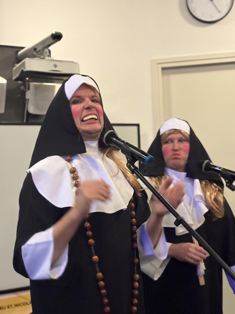 We hebben priester Sanchon Alfred opgehaald bij de pastorie en zijn hem voorgegaan richting de hoofdingang van de kerk. Dank aan iedereen die de moeite genomen heeft om voor dit korte moment ten tonele te verschijnen en daarmee te zorgen dat we weer mooi zichtbaar waren in ons dorp.