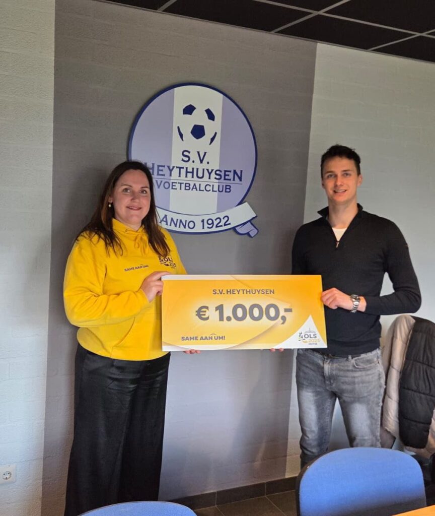 In de afgelopen dagen bracht onze voorzitter Jeanine, en tevens vice-voorzitter van Stichting OLS Heitse 2025, een bezoekje aan onze buren op Sportpark Molenhoek in Heythuysen. Tijdens de OLS-evenementen hebben we dankbaar gebruik mogen maken van de clubgebouwen en de terreinen van TC Rulec, Atletiek Leudal en S.V. Heythuysen. Dankzij de fijne samenwerking en de bereidheid om mee te denken en te helpen, konden we samen iets moois neerzetten voor ons dorp en alle bezoekers. Als blijk van waardering mocht Jeanine namens Stichting OLS Heitse 2025 een mooie cheque overhandigen aan deze kanjers.